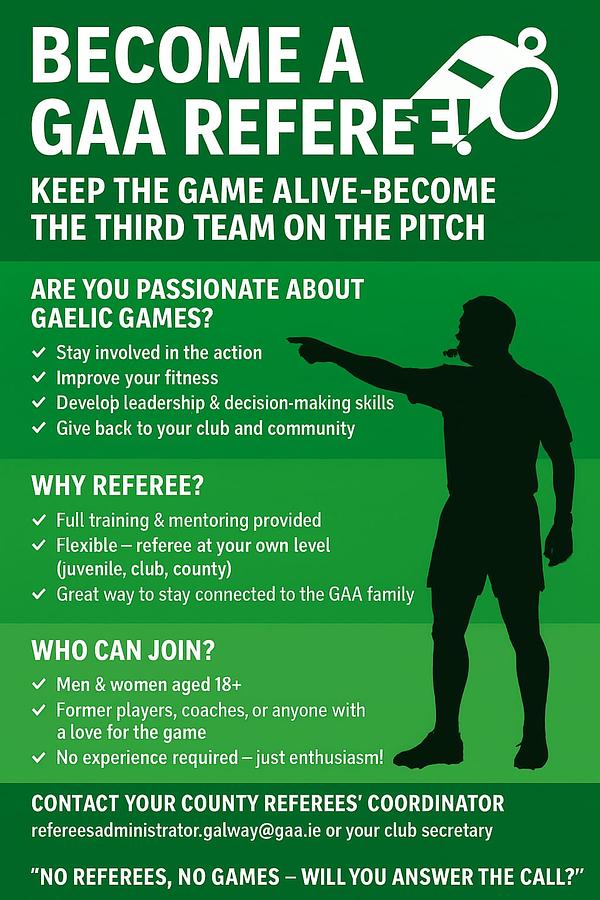 The referee and match officials are entrusted with a vital role - to apply the rules of our games. Gaelic Games is unique in that the team of match officials consists of a referee two linespersons, four umpires and the sideline official.